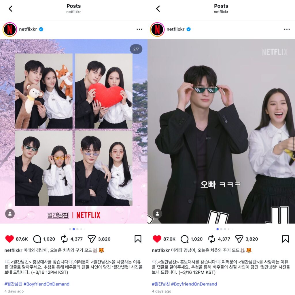 今回、Netflix Koreaの公式Instagramで行われていた『マンスリー彼氏』のイベントに参加しました。